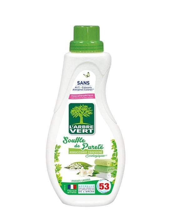 O amaciador ecológico L’Arbre Vert é adequado mesmo para pessoas com pele muito sensível! Hipoalergénico cuida naturalmente da sua roupa e deixa-a com uma fragrância delicada.