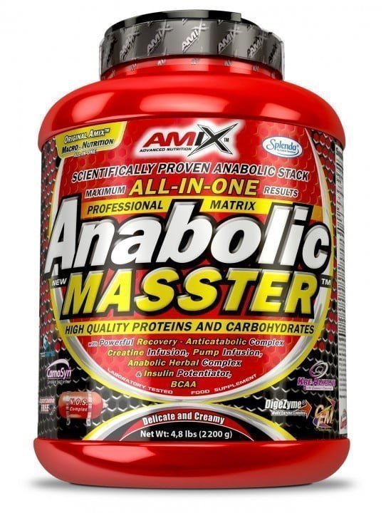 Amix ™ Anabolic Masster ™, é uma macro fórmula única. A base é uma mistura de proteínas de alta qualidade, hidratos de carbono, e uma combinação de componentes, como: Monohidrato de Creatina, KreAlkalyn®, Creatina Etil Éster, L-Glutamina, L-Arginina Hcl, L-Arginina Alfa Cetogluterato, aminoácidos essenciais, aminoácidos ramificados, Tribulu Terrestris, HMB e muitos mais para produzir um efeito anabólico explosivo total. Esta excelente mistura de componentes é única e fornece-nos tudo que precisamos para alcançar um aumento notável da massa muscular.