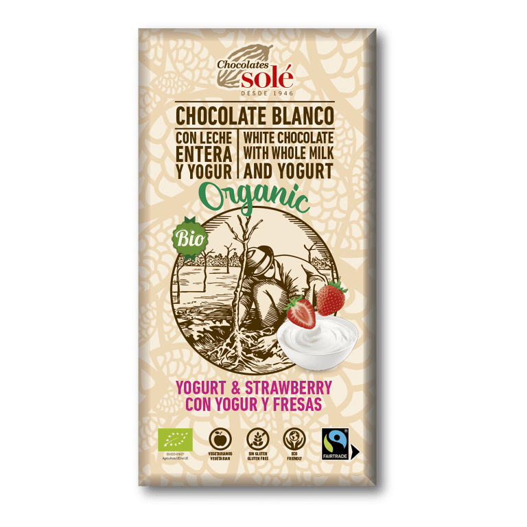 Ingredientes: Açúcar de cana integral*, manteiga de cacau*, leite em pó, iogurte em pó (leite magro em pó, fermentos) (13%), morangos (1%), emulsionante (lecitina de girassol) e baunilha.