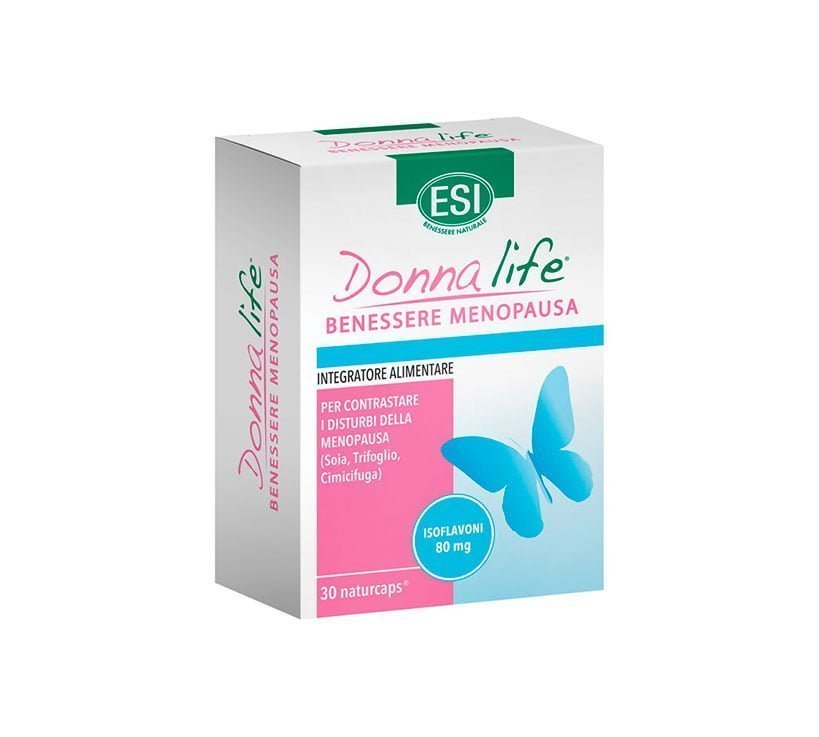 Donna Life Menopausa é um suplemento alimentar com Isoflavonas, provenientes da Soja e do Trevo vermelho. Contém também extrato de Cimifuga racemosa, e é complementado com Magnésio e Vitamina B6, que no seu todo ajudam a aliviar os sintomas desagradáveis associados à Menopausa.