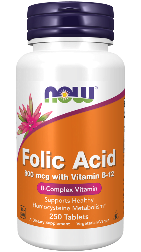 NOW® Ácido fólico com Vitamina B12. Fixação de Ferro – fórmula especial para grávidas ou lactantes. Mantém níveis adequados de homocisteína (níveis baixos provocados pela carência de Vitamina B12). Previne a espinha bífida, reduz o risco de partos prematuros e o risco de defeitos do tubo neural. Com Vitamina B12, ajuda a manter níveis adequados de homocisteína. Fórmula vegetariana.