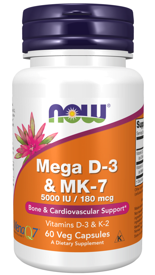 Mega D-3 & MK-7 é um suplemento alimentar para o Suporte da Saúde Óssea e Cardiovascular. Contém vitamina D3 e MK7. A vitamina D3 ajuda a promover a fixação de cálcio no osso; fortalecer a massa óssea; previnir a osteoporose e reduz o risco de fraturas; previnir a osteomalacia (fraqueza dos ossos e dos músculos) A Vitamina K2 (na forma de MenaQ7® – proveniente do grão fermentado, sem soja, com disponibilidade mais elevada) participa na fixação do cálcio na matriz óssea. Ajuda a proteger os vasos sanguíneos contra a calcificação – prevenção da arteriosclerose; previnir ataques cardíacos e derrames cerebrais; contribuir para a normal coagulação sanguínea.