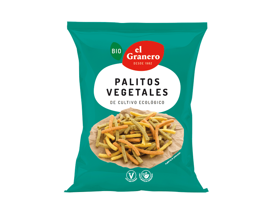 Ingredientes: Farinha de milho*, Óleo de girassol*, Farinha de batata*, Fécula de batata*, Amido de milho*, Farinha de arroz*, sal marinho, Açúcar de cana*, Espinafre em pó*, Tomate em pó*, Beterraba em pó*, Curcuma*. Pode conter vestígios de glúten e leite.