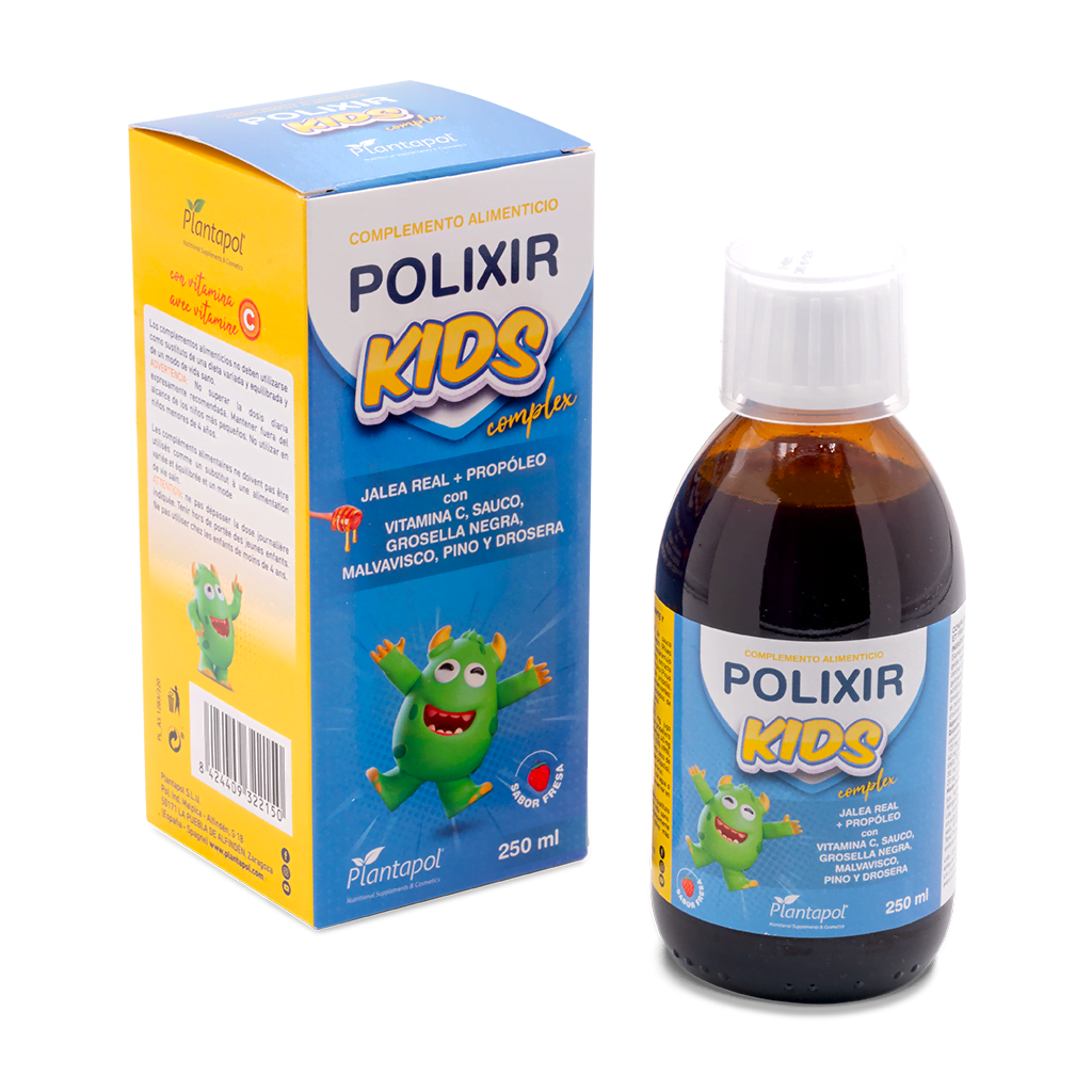 Polixir Kids Complex é um suplemento alimentar formulado especialmente para crianças a partir dos 4 anos, auxiliando no alivio de sintomas do trato respiratório ou profilático em períodos gripais. Contém sumo de Sabugueiro e Groselheira negra, Geleia Real, Roseira-brava, Alteia, Pinheiro, Própolis e Drósera.