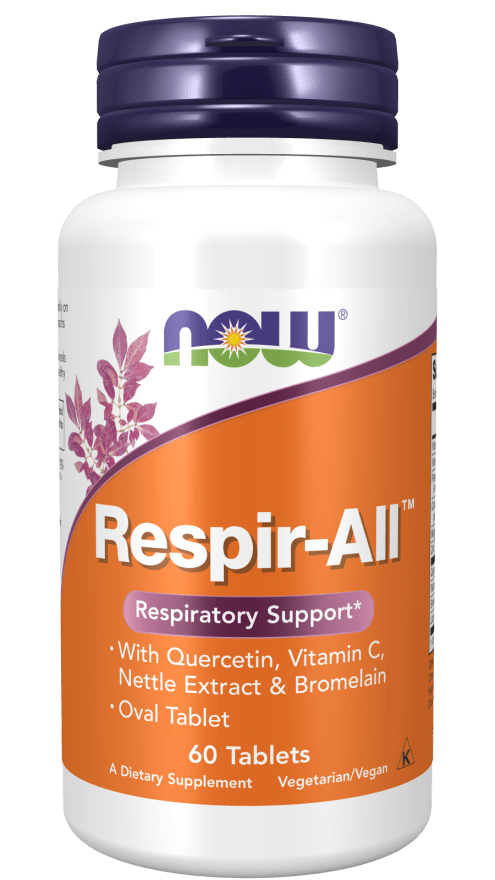 NOW® Respir-All™ Allergy – Alergias sazonais – acalma a resposta inflamatória do Sistema Imunitário. Alergias do Trato Respiratório Superior, ao pólen e febre dos fenos. Normaliza a resposta de histamina no organismo. Com Quercetina, Vitamina C, Bromelina, com extrato de Urtiga e L-OptiZinc™ (Monometionina que inibe a absorção de Chumbo e reduz os seus níveis no sangue). Fórmula vegetariana.