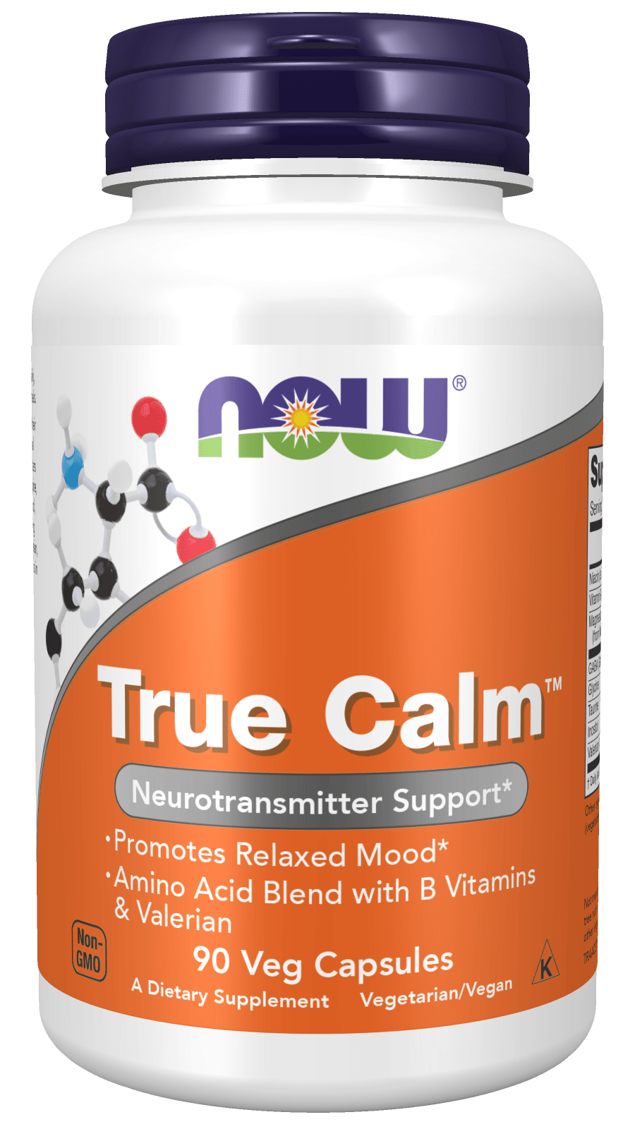 NOW® True Calm é um suplemento alimentar, que combina aminoácidos e cofatores, desenvolvido para apoiar a produção normal e a função de neurotransmissores calmantes no cérebro, reduzindo a ansiedade, o cansaço e fadiga e melhorando a memória e o desempenho mental. Esta fórmula contém aminoácidos, Gaba, vitaminas do complexo B, Magnésio e Valeriana. A Niacina ou vitamina B3.