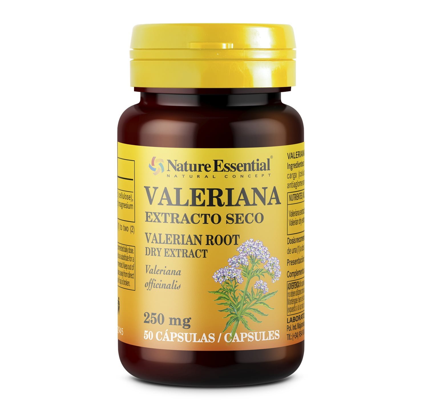 Ingredientes por 2 cápsulas: Ext. seco de Valeriana (Valeriana officinalis) raiz (500mg) equivalente a 2500 mg de planta, Agente de volume (celulose), Revestimento (gelatina), Antiaglomerante (sais de magnésio de ácidos gordos).