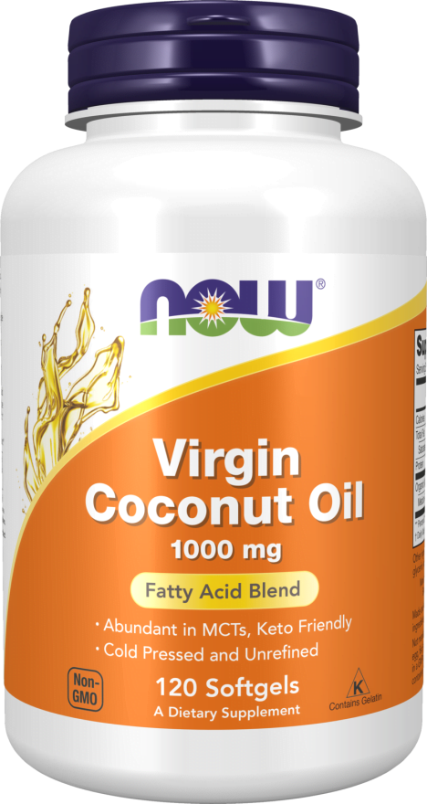 NOW® Virgin Coconut Oil 1000 mg é um óleo de Côco de alta qualidade, extraído a frio e orgânico, rico em Triglicéridos de Cadeia Média que são ácidos gordos de fácil metabolização e por isso uma fonte rápida de energia sem alterar a glicemia, contribuindo para diminuir a resistência insulínica. Pela presença de ácido caprílico, o óleo de Côco é antimicrobiano, especialmente antifúngico e por isso utilizado na manutenção da flora intestinal por inibição da proliferação de microorganismos oportunistas como a Candida albicans.